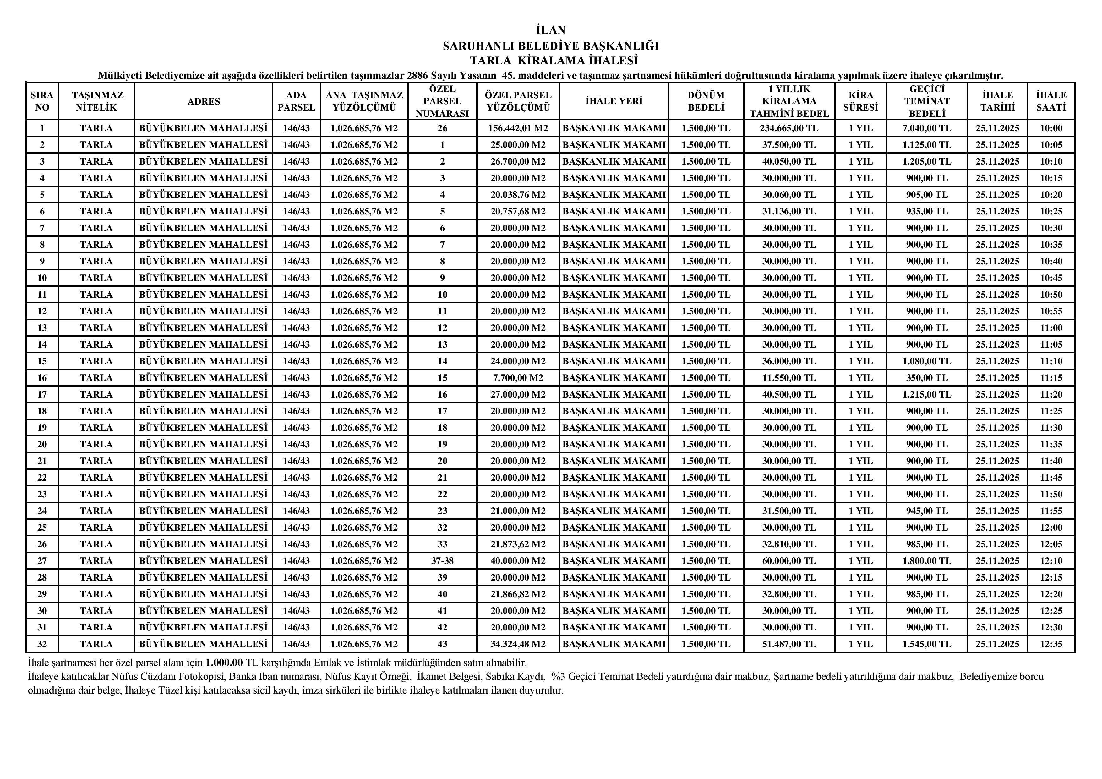 TARLA KİRALAMA İHALESİ